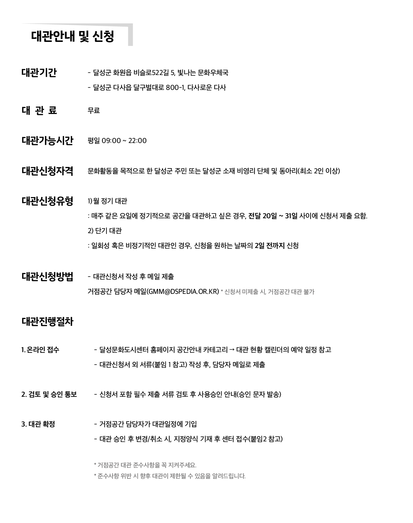 대관안내 및 신청