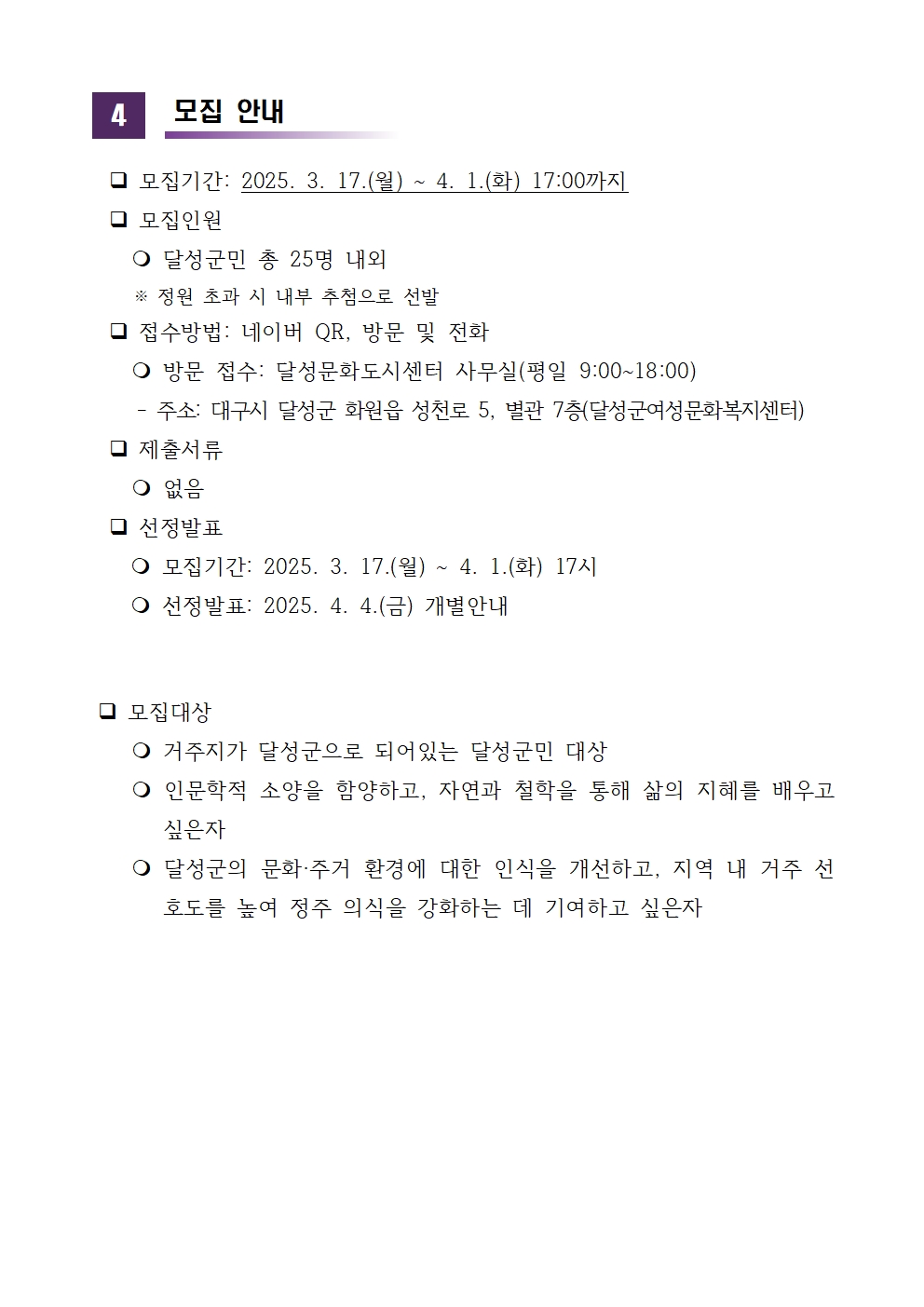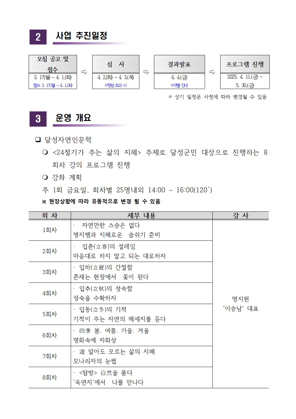 2025 「힐링워크」 달성자연인문학 교육생 모집 공고